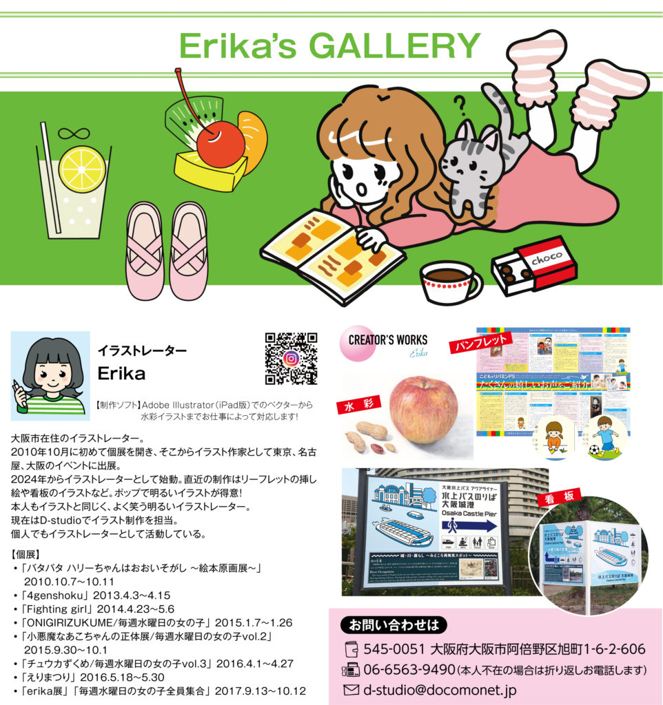 約1年前ぐらいからイラスト制作でお世話になっているイラストレーターのErikaさんのページです。