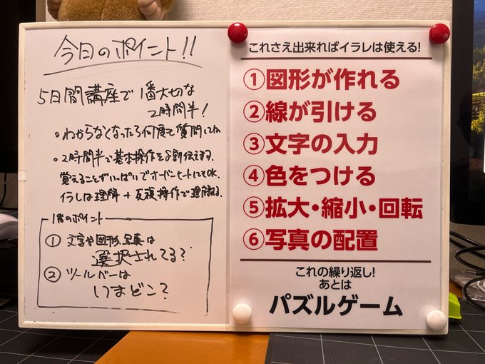 これ実は去年とほぼ同じ書き出しです。去年からホームページのブログを使って、主にストアカの初心者向けイラレ講座の1年の振り返りをこの時期にするのですが、なぜ今かと言うと単純に講座会場となる仕事部屋にエアコン設備がないから。まさか先生と一緒にパンイチで頑張りましょ!とはならないので、室温が高くなる6月から9月いっぱいまではお休みに。その区切りのついたタイミングで1年を振り返る。という流れで今年も講師がこの1年間に思ったことを記します。