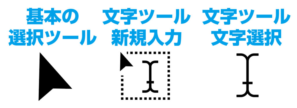 マウスポインタは普段は矢印状態で、イラレを起動すると左の選択ツールが基本となり三角っぽい矢印に変わります。